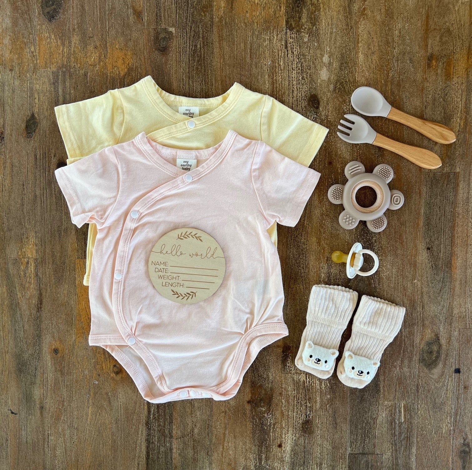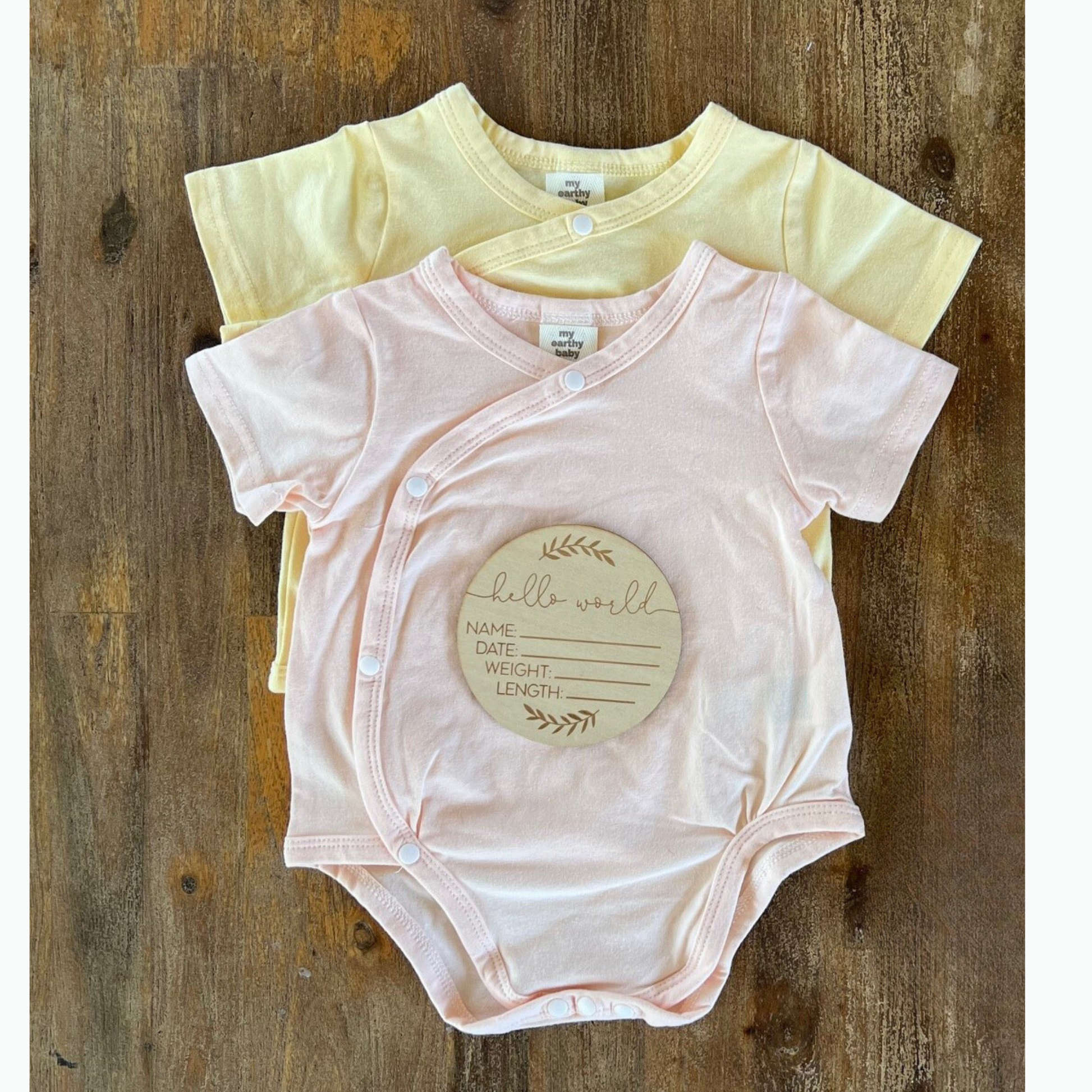 What's Included: 2 X short sleeve onesies (light yellow and light pink)